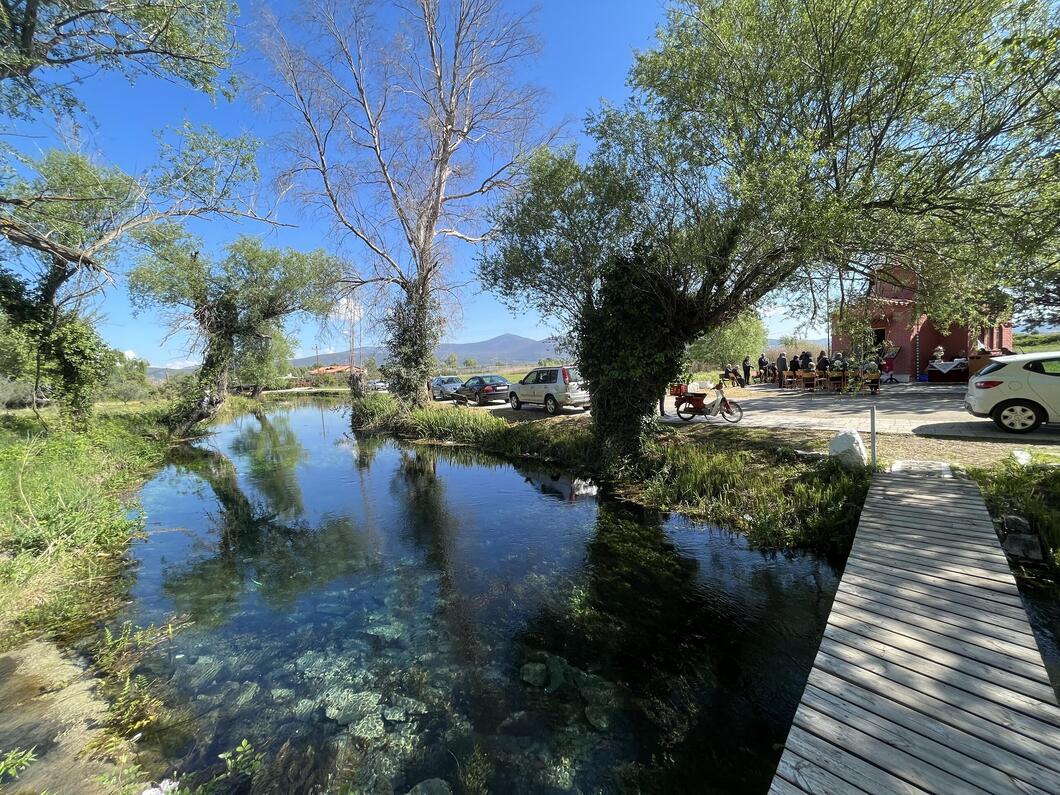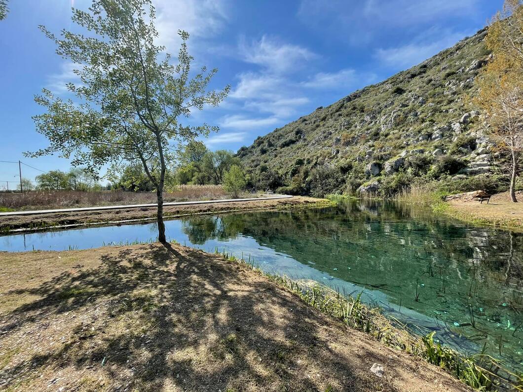 Συνεχίζοντας και σε 100 μέτρα περίπου θα βρει το αναψυκτήριο που κατασκεύασε ο Δήμος Ορχομενού. Στο γραφικό περιβάλλον του μπορεί να απολαύσει το αναψυκτικό, τον καφέ, το ποτό και γευστικά μεζεδάκια. Αφού προσπεράσει και το αναψυκτήριο σε 200 μέτρα θα φτάσει σ΄έναπανέμορφο τοπίο με κρυστάλινα νερά. Είναι το σημείο που οι Ορχομένιοι ονομάζουν "Πηγές" και που χρησιμοποιούσαν και χρησιμοποιούν για κοντινές εκδρομές (όπως για παράδειγμα την πρωτομαγιά).